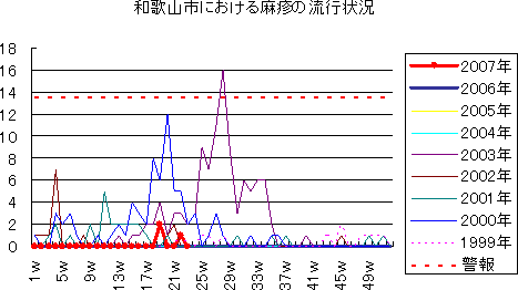 また,「風疹」は,和歌山市内では,2004年7例,2005年4例の報告でした。