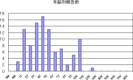 年齢別では、乳幼児〜小中学生で報告がみられます。