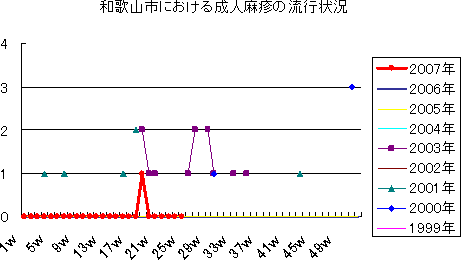 また,「風疹」は,和歌山市内では,2004年7例,2005年4例の報告でした。