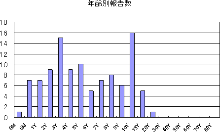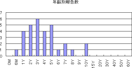 年齢別では、3歳、6歳、7歳2例、9歳でした。