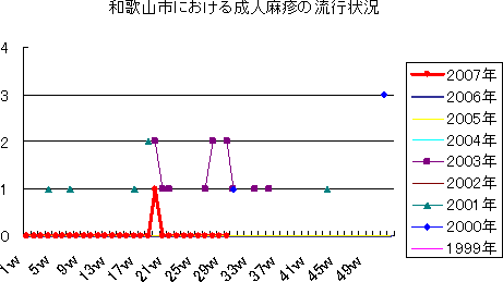 また,「風疹」は,和歌山市内では,2004年7例,2005年4例の報告でした。