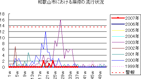 上記のとおり、現状では、和歌山県内・市内とも各地で散発事例が認められているものの、際立った流行は認められておりません。