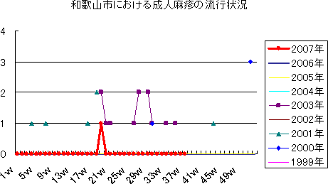また,「風疹」は,和歌山市内では,2004年7例,2005年4例の報告でした。
