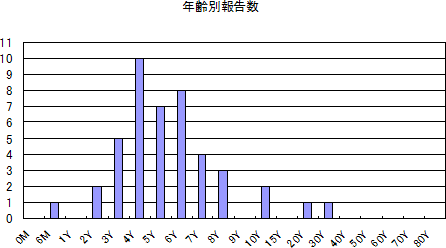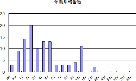 今シーズンは、第41週が42例、第42週が73例、第43週が101例、第44週108例と増加してきています。昨年より更に早い時季に増加してきており、今後も注意が必要です。年齢別では、乳幼児を中心ですが、20歳代まで幅広く報告がみられます。