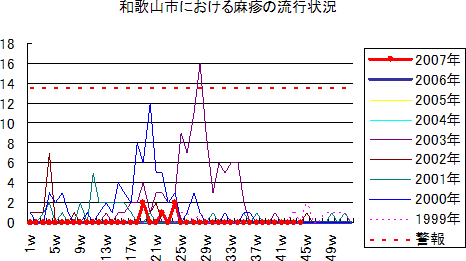 上記のとおり、現状では、和歌山県内・市内とも各地で散発事例が認められているものの、際立った流行は認められておりません。