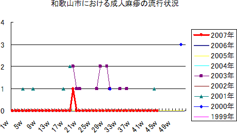 また,「風疹」は,和歌山市内では,2004年7例,2005年4例の報告でした。