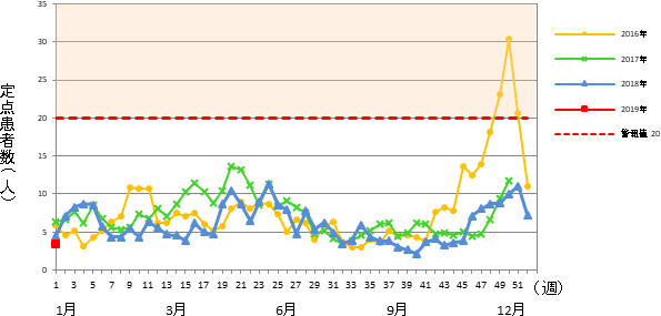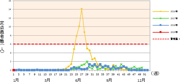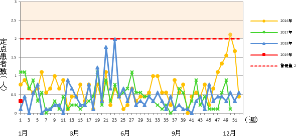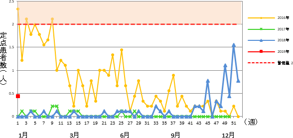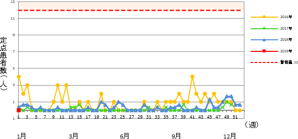 2019年 第1週 / 5類感染症 定点医療機関週報報告の対象疾患の報告数の推移