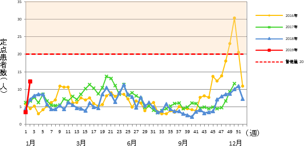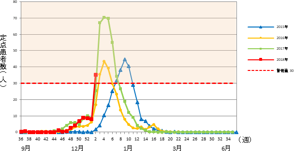インフルエンザ゙定点 市内 15医療機関(小児科9&内科6)