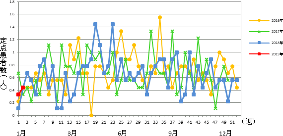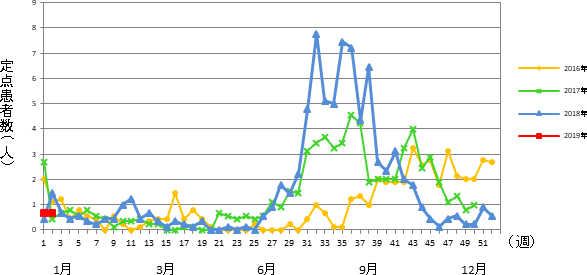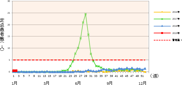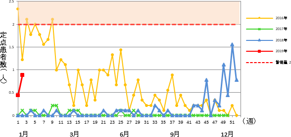 2019年 第2週 / 5類感染症 定点医療機関週報報告の対象疾患の報告数の推移