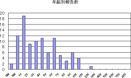 年齢別では、0歳から5歳までの乳幼児に報告がみられます。