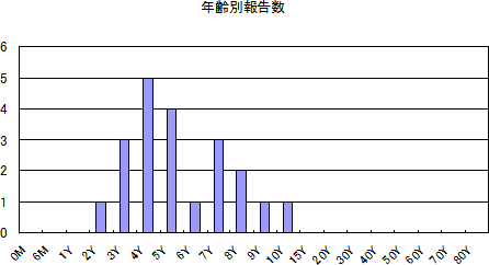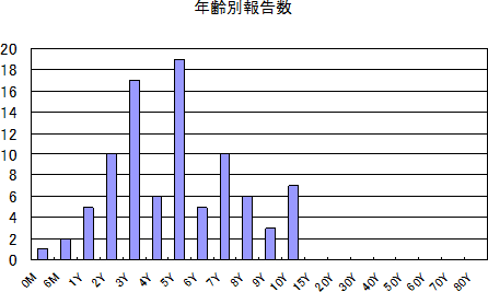 年齢別では、乳幼児が中心ですが、幅広い年齢層で報告されています。