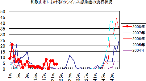 また,「風疹」は,和歌山市内では,2004年7件,2005年4件の報告でした。2008年第3週で5年ぶりに1件の報告がありました。