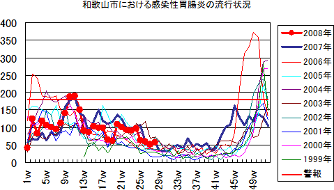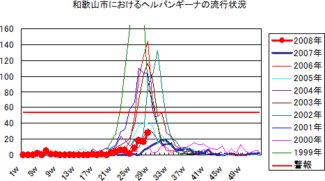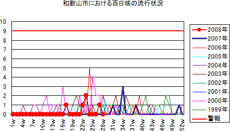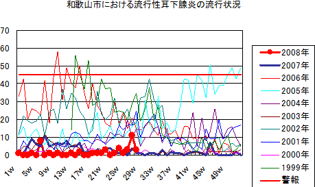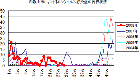 2008年第28週の和歌山市の5類感染症(定点把握)の発生状況です。