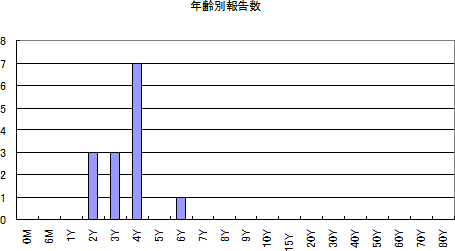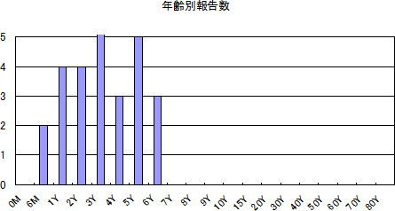 年齢別では、就学前の乳幼児を中心に6歳まで報告されています。