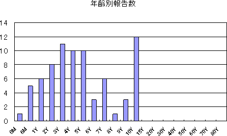 年齢別では、4歳4件、5歳5件、8歳2件、10-14歳1件でした。