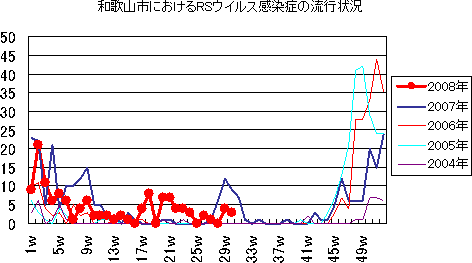 2008年第30週の和歌山市の5類感染症(定点把握)の発生状況です。