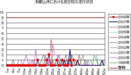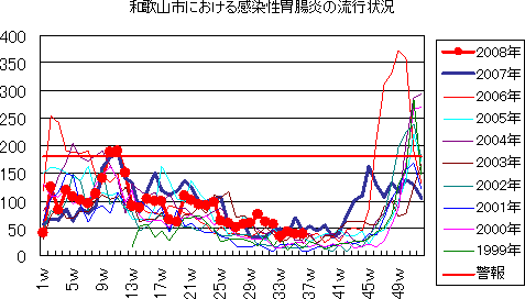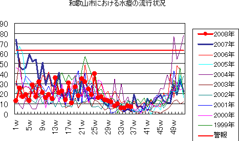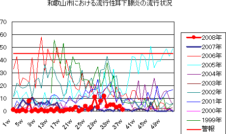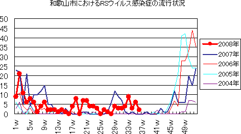 2008年第36週の和歌山市の5類感染症(定点把握)の発生状況です。