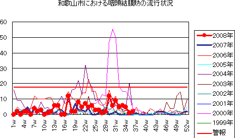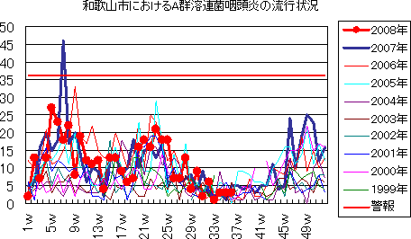 本感染症では,治療が十分に行われないと腎炎,リウマチ熱を発症することがあるので,早期診断,適切な治療が特に必要とされています。田辺保健所管内には警報が発令されており今後の動向に注意が必要です。