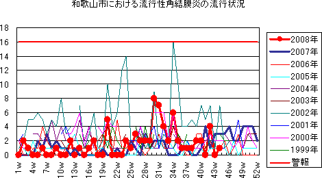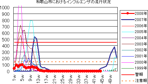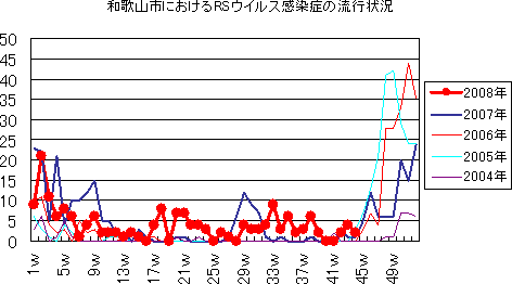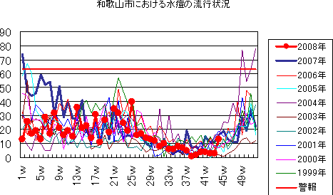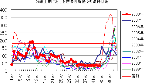 2008年第44週の和歌山市の5類感染症(定点把握)の発生状況です。