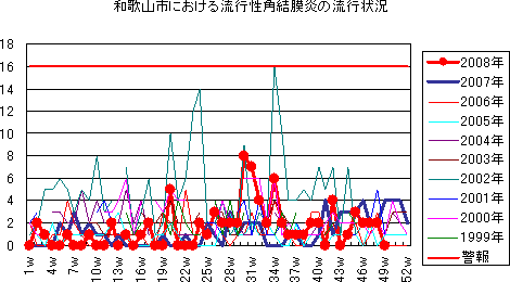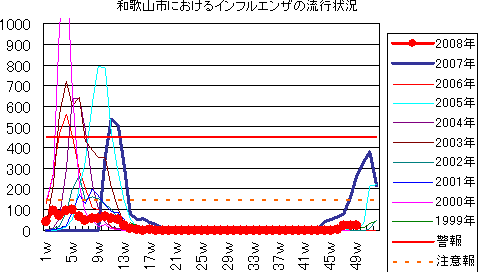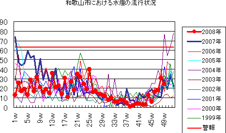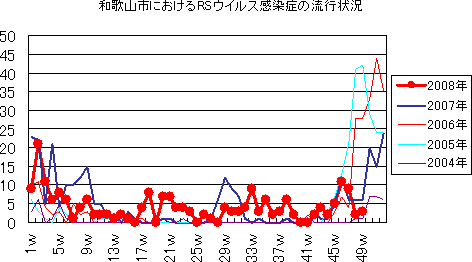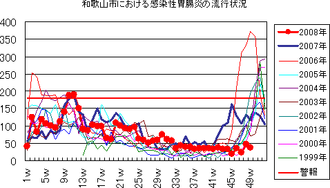 2008年第49週の和歌山市の5類感染症(定点把握)の発生状況です。