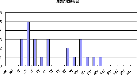 第46週の7件から第47週の24件、第48週は25件と増加を認めており、第49週も24件の報告を認めております。乳幼児を中心に、児童生徒から成人にわたる幅広い年齢層に分布しています。