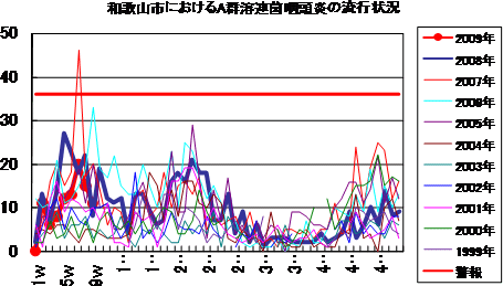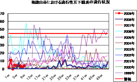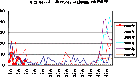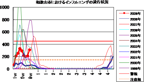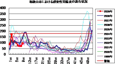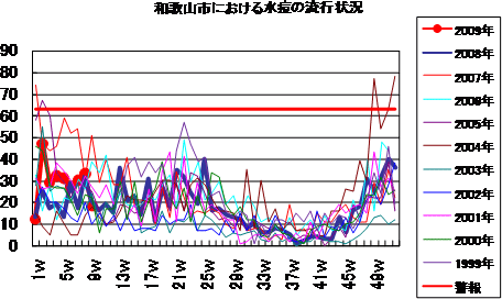 2009年第9週の和歌山市の5類感染症(定点把握)の発生状況です。