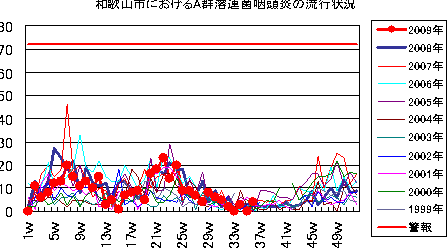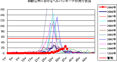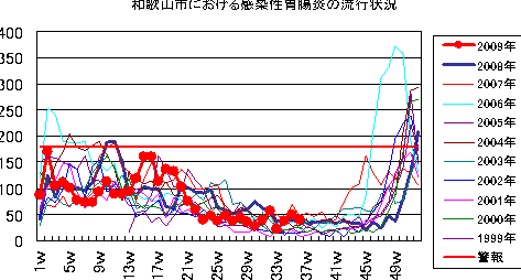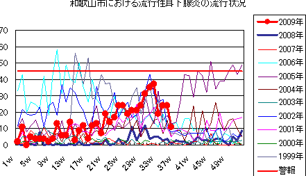 2009年第36週の和歌山市の5類感染症(定点把握)の発生状況です。
