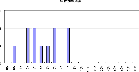 2009年では、第16週に初めて報告があり、その後も第17週に2件、第18週に1件、第21週に1件、第24週1件、の報告がありました。4例は1歳児で1例は2歳児でワクチン接種後です。診断は臨床診断1例、血清診断3例です。ウイルスPCR検査はいずれも陰性でした。
