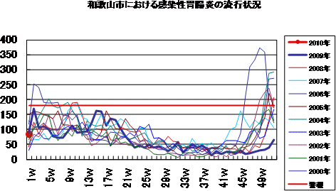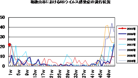 2009年第53週&2010年1Wの和歌山市の5類感染症(定点把握)の発生状況です。