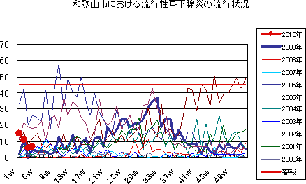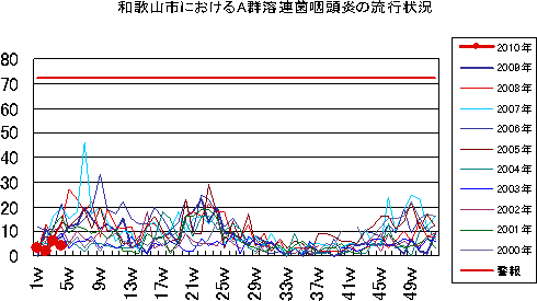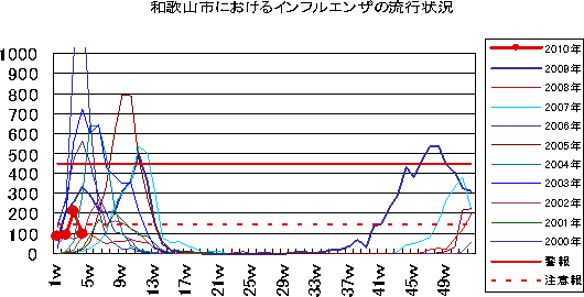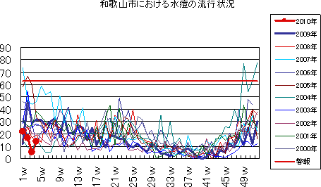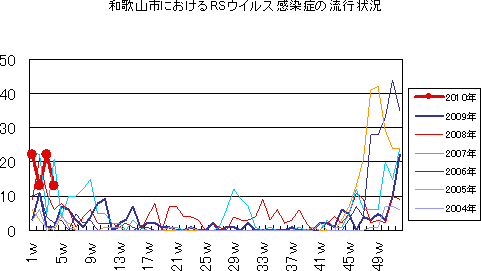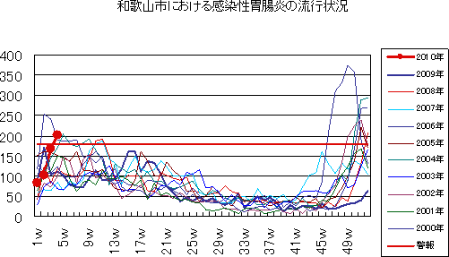 2010年2W・3Wの和歌山市の5類感染症(定点把握)の発生状況です。