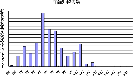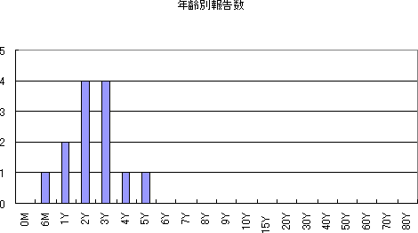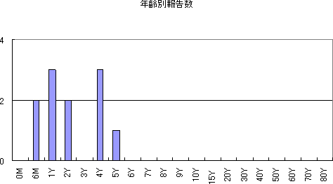 2008年は、第10〜46週に計23件で、年齢別の届出状況は次のとおりです。