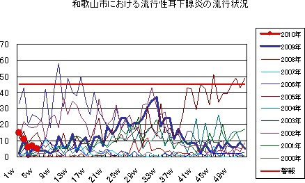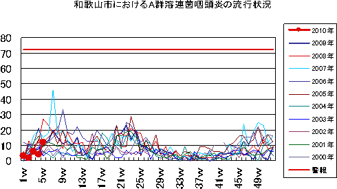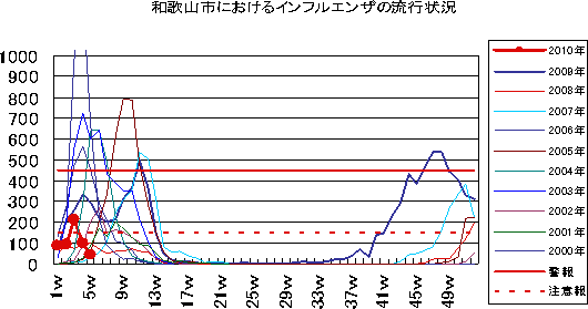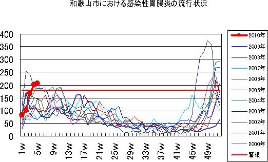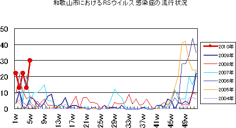 2010年2W・3Wの和歌山市の5類感染症(定点把握)の発生状況です。