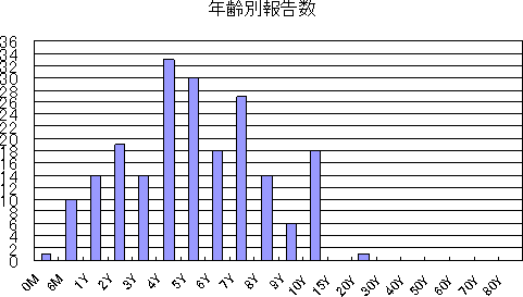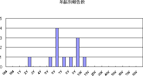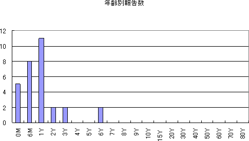 2008年は、第10〜46週に計23件で、年齢別の届出状況は次のとおりです。