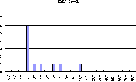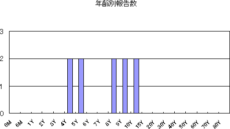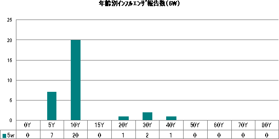 2010年では、第1週に15件の報告があり、やや増加気味でしたが、第4週7件、第5週では5件、第6週は2件と終息しています。年齢別では、3歳〜6歳で最も多い報告ですが、10-14歳や20歳代での報告も見られます。