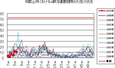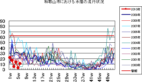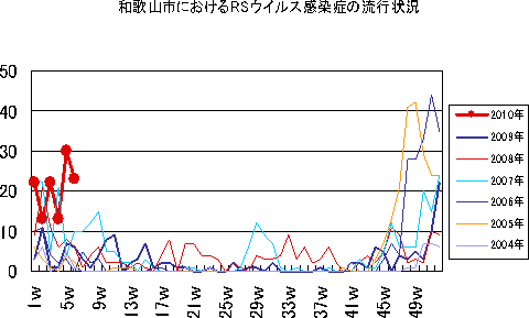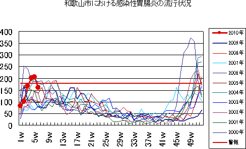 2010年6Wの和歌山市の5類感染症(定点把握)の発生状況です。