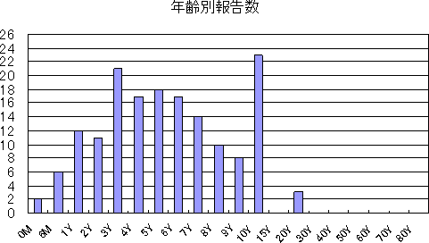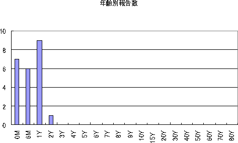 2008年は、第10〜46週に計23件で、年齢別の届出状況は次のとおりです。