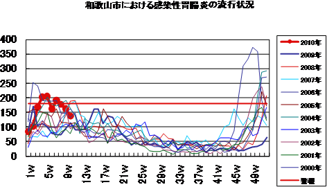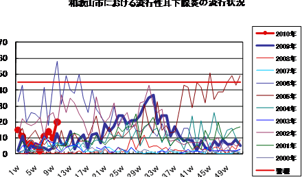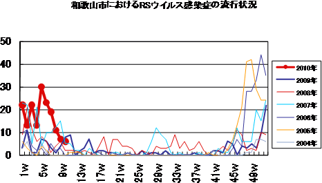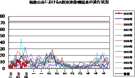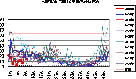 2010年10Wの和歌山市の5類感染症(定点把握)の発生状況です。