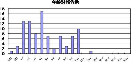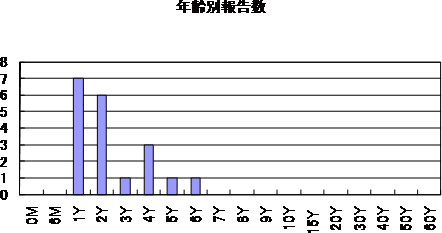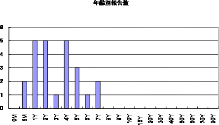 2008年は、第10〜46週に計23件で、年齢別の届出状況は次のとおりです。