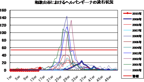 2010年15Wの和歌山市の5類感染症(定点把握)の発生状況です。