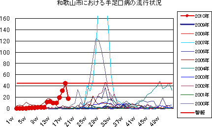 2010年18Wの和歌山市の5類感染症(定点把握)の発生状況です。