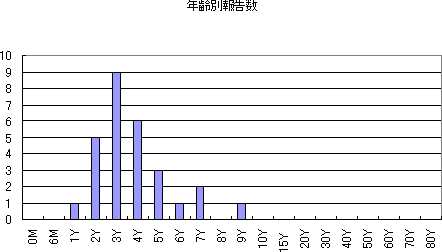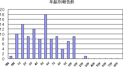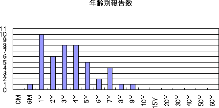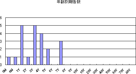 2008年は、第10〜46週に計23件、2009年は、第16〜24週に計6件でした。2008年、2009年の年齢別の届出状況は次のとおりです。