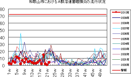 2010年22Wの和歌山市の5類感染症(定点把握)の発生状況です。