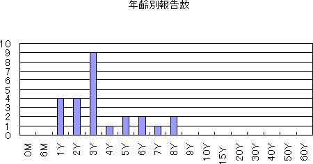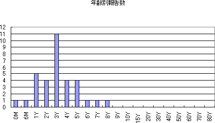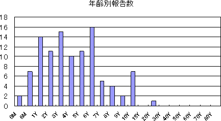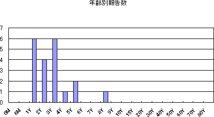 2008年は、第10〜46週に計23件、2009年は、第16〜24週に計6件でした。2008年、2009年の年齢別の届出状況は次のとおりです。