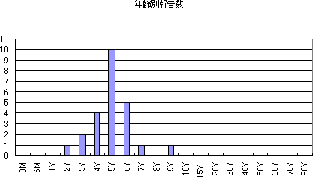 | 0歳 | 1歳 | 5歳 | 10歳 | 15歳 | 20歳 | 25歳 | 30歳 | 35歳 | 40歳 | 計 | |