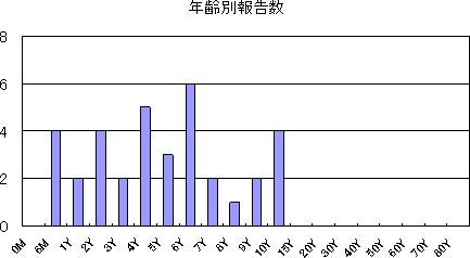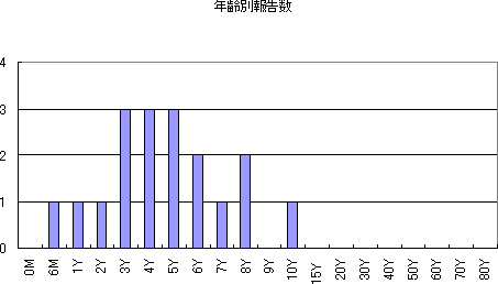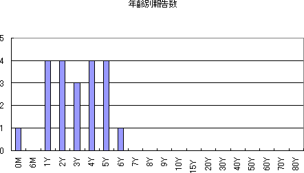 | 0歳 | 1歳 | 5歳 | 10歳 | 15歳 | 20歳 | 25歳 | 30歳 | 35歳 | 40歳 | 計 | |