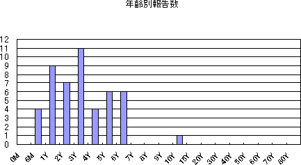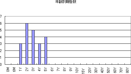 | 0歳 | 1歳 | 5歳 | 10歳 | 15歳 | 20歳 | 25歳 | 30歳 | 35歳 | 40歳 | 計 | |