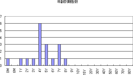 | 0歳 | 1歳 | 5歳 | 10歳 | 15歳 | 20歳 | 25歳 | 30歳 | 35歳 | 40歳 | 計 | |