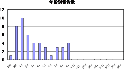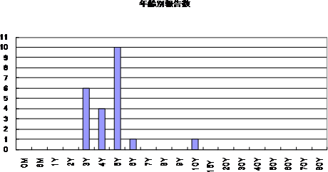 | 0歳 | 1歳 | 5歳 | 10歳 | 15歳 | 20歳 | 25歳 | 30歳 | 35歳 | 40歳 | 計 | |