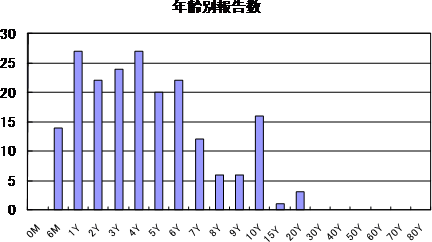 今シーズンでは、第45週に13件の報告がありましたが、第46週は4件でした。年齢別では、0歳〜2歳までの乳幼児が集中しております。冬季に差し掛かるため、更なる感染拡大も考えられます。今後の動向に注意が必要です。