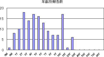 | 0歳 | 1歳 | 5歳 | 10歳 | 15歳 | 20歳 | 25歳 | 30歳 | 35歳 | 40歳 | 計 | |